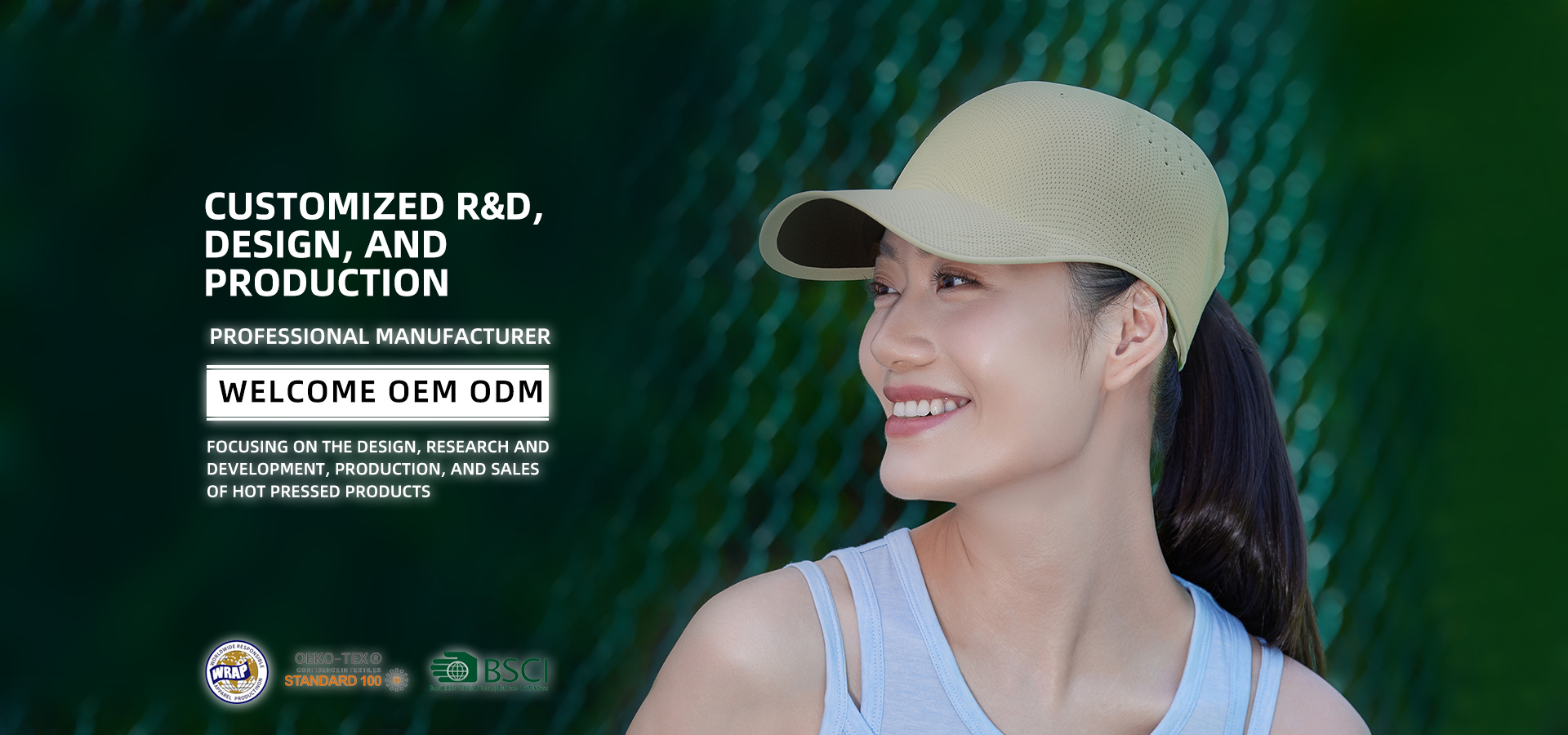 As a WRAP and BSCI certified manufacturer, we specialize in designing, developing, and producing hot-press molded headwear and technical accessories. Our 12,000m² facility features :